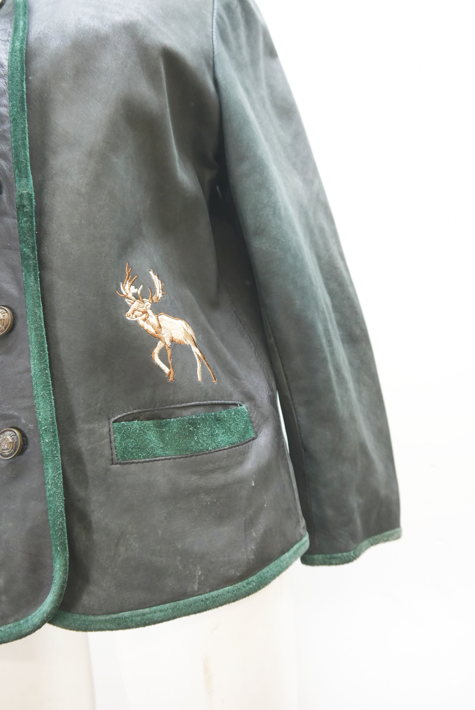 Die Trachtenjacke wurde gerne getragen und ist altersentsprechend in einem guten Zustand.