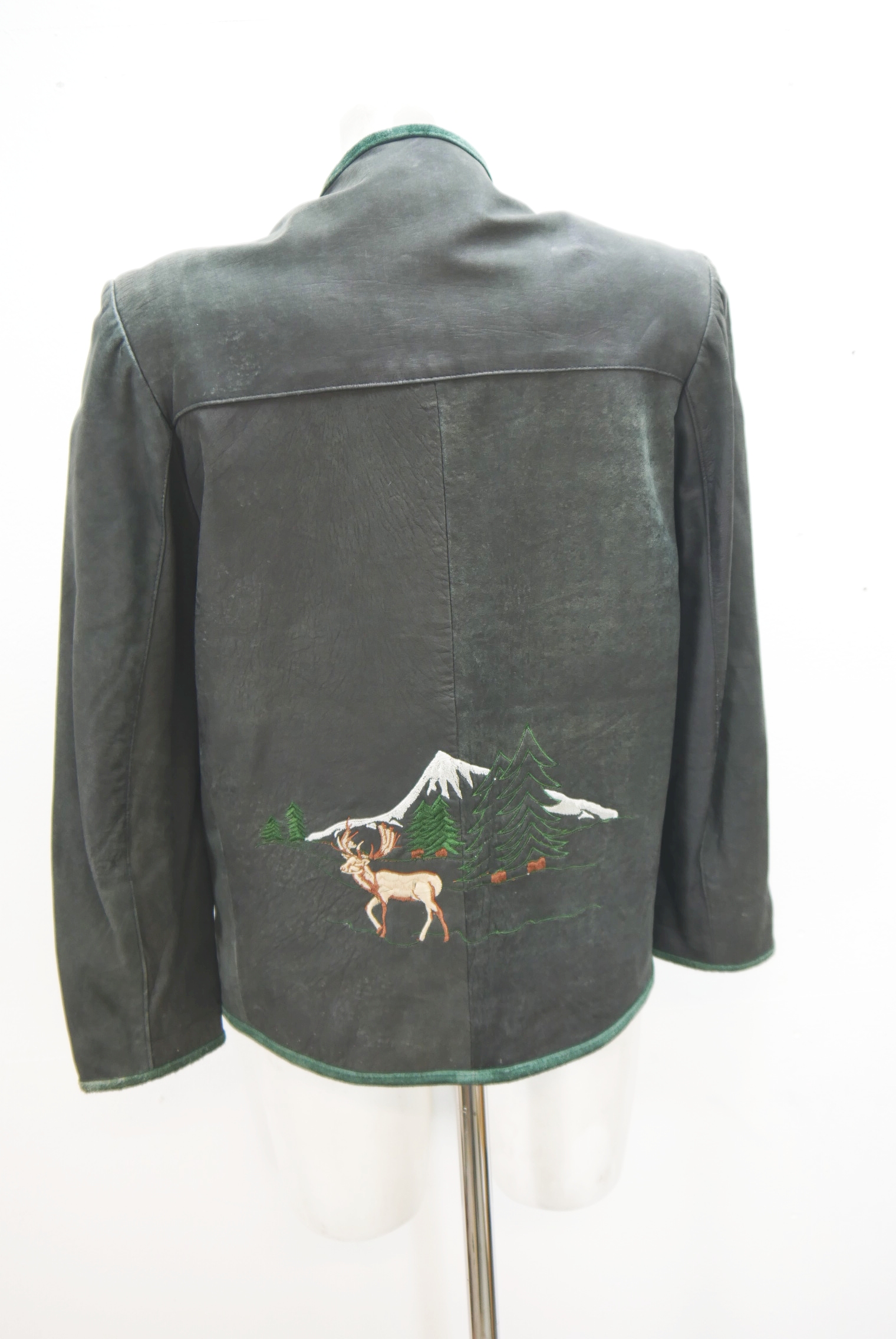 Vintage Lederjacke Stickerei Glattleder grau Trachtenjacke Blazer