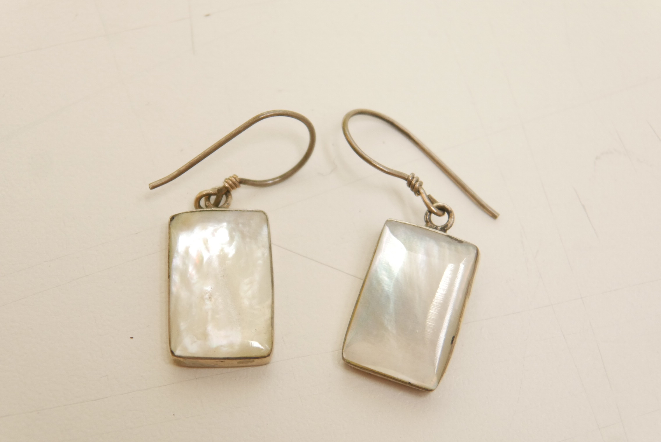 Bezaubernde weisse Perlmut Ohrringe Ohrhänger aus 925er Silber im Antik Used-Look Design