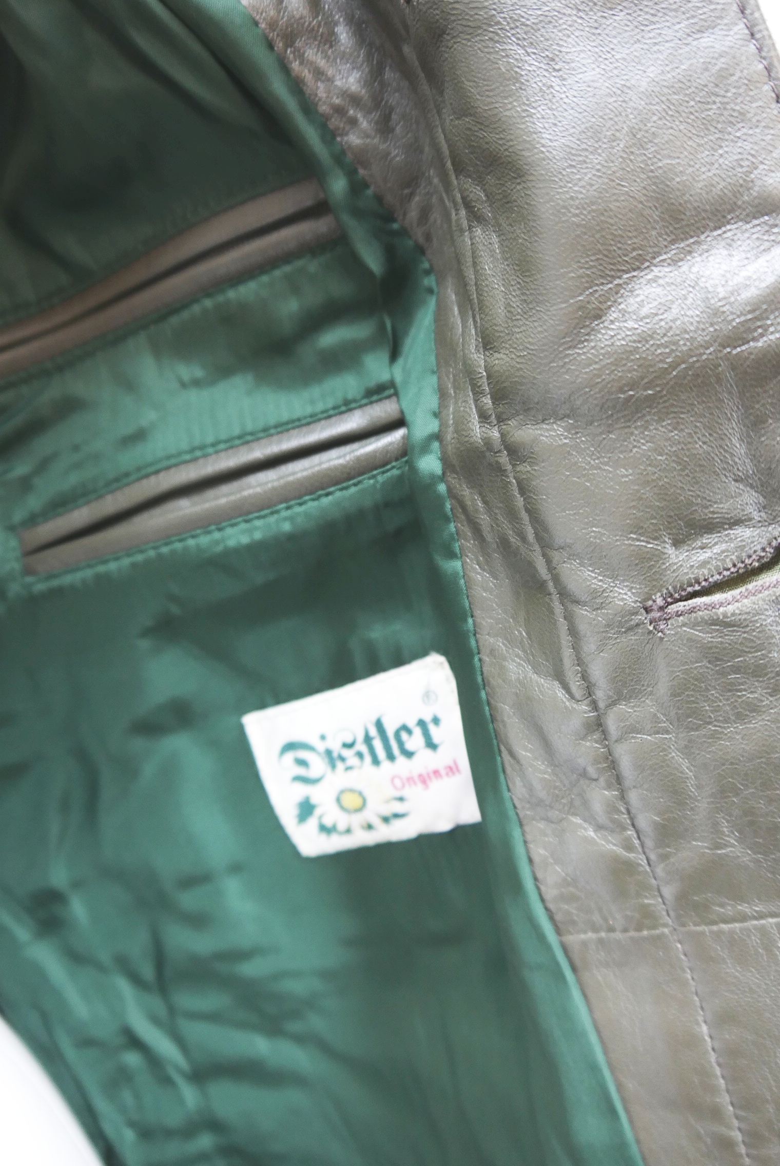 Distler Lederjacke grau Trachtenjacke Stickerei Ziegenleder leicht speckig