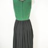 - Das Trachtenkleid ist einfarbig grün mit schwarz