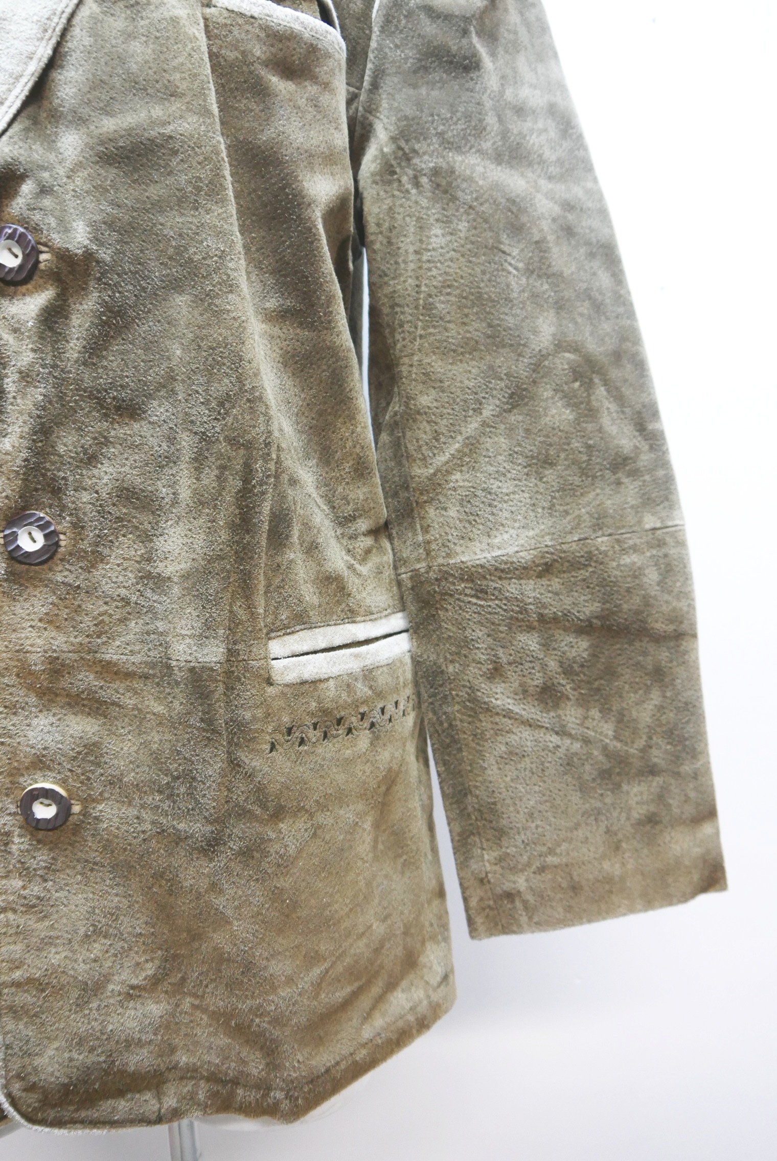 • Die Lederjacke hat schöne Knöpfe