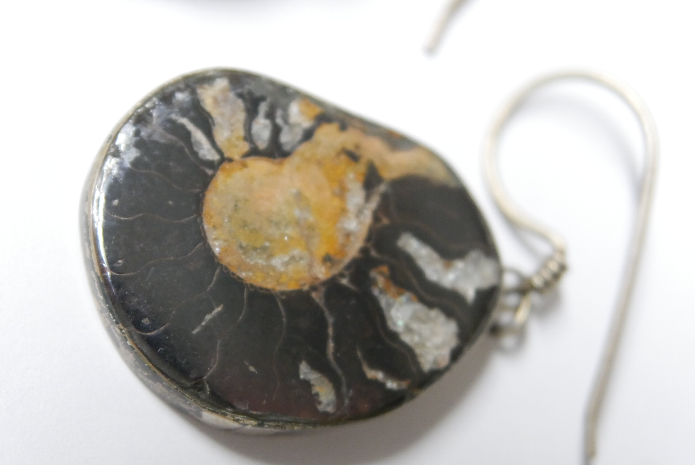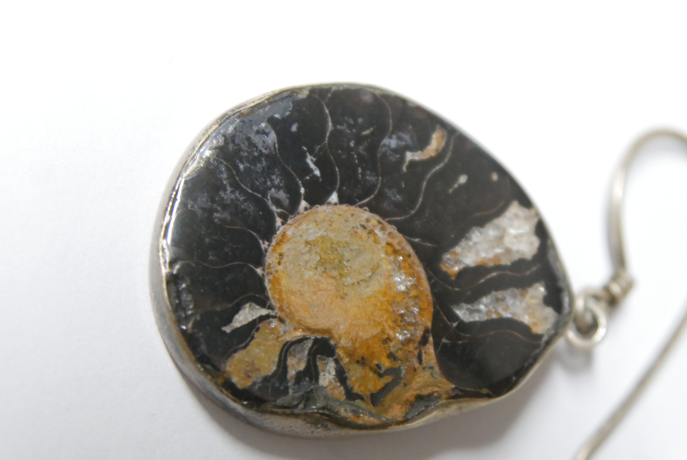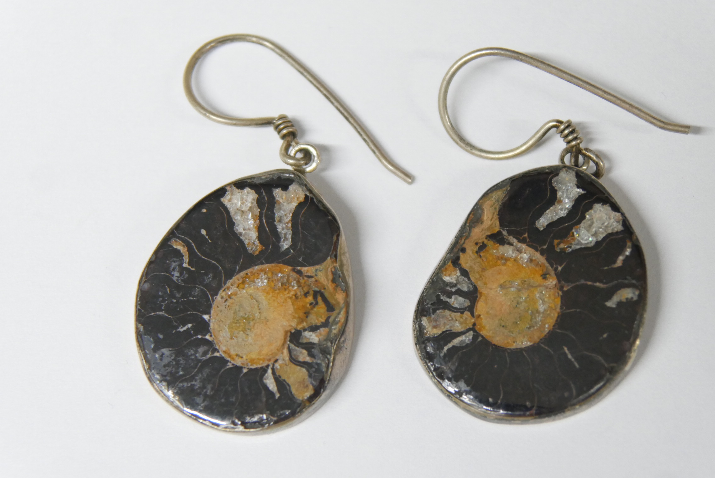 Extravagante Ohrringe Ohrhänger aus 925er Silber mit Amonit Mineralstein.