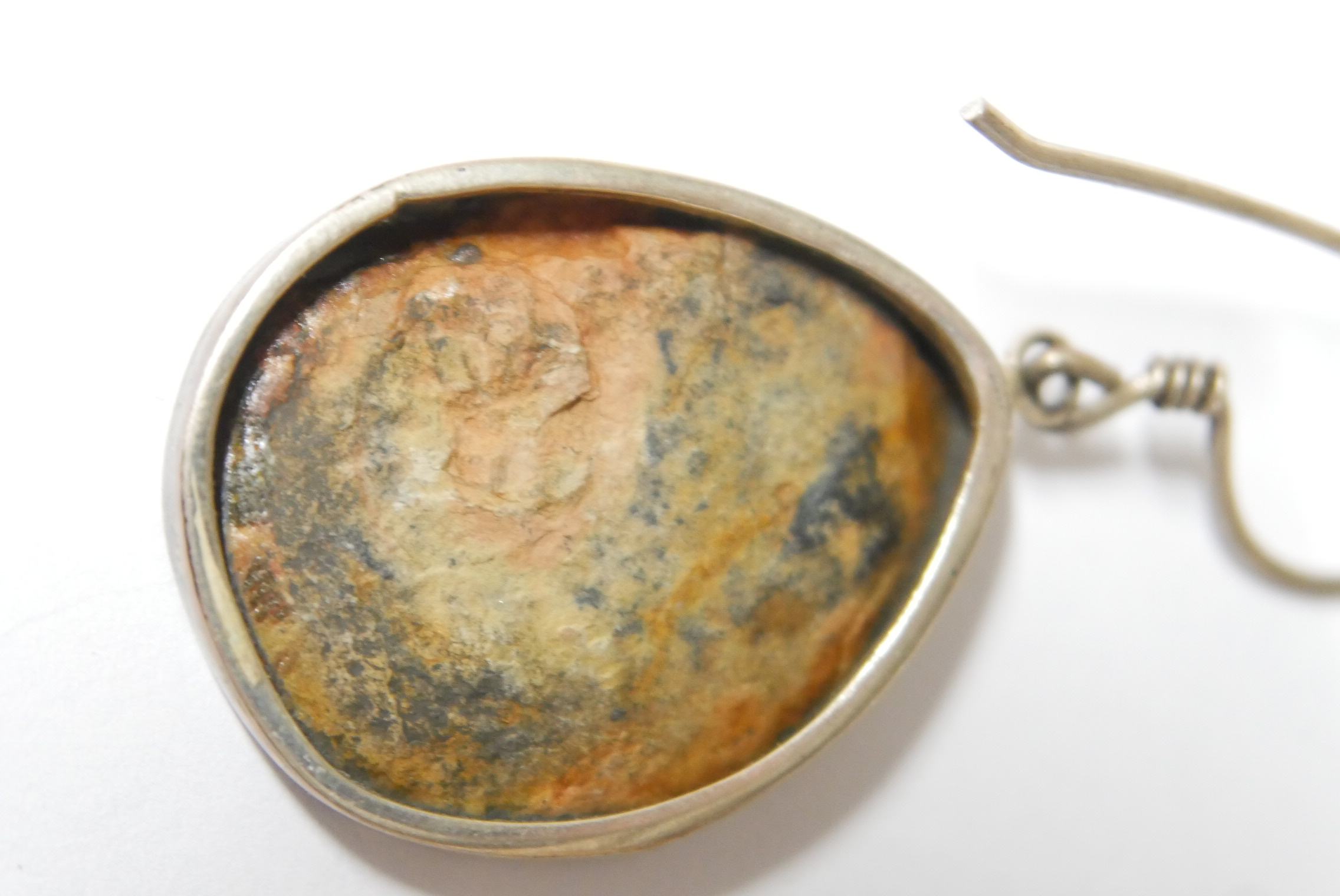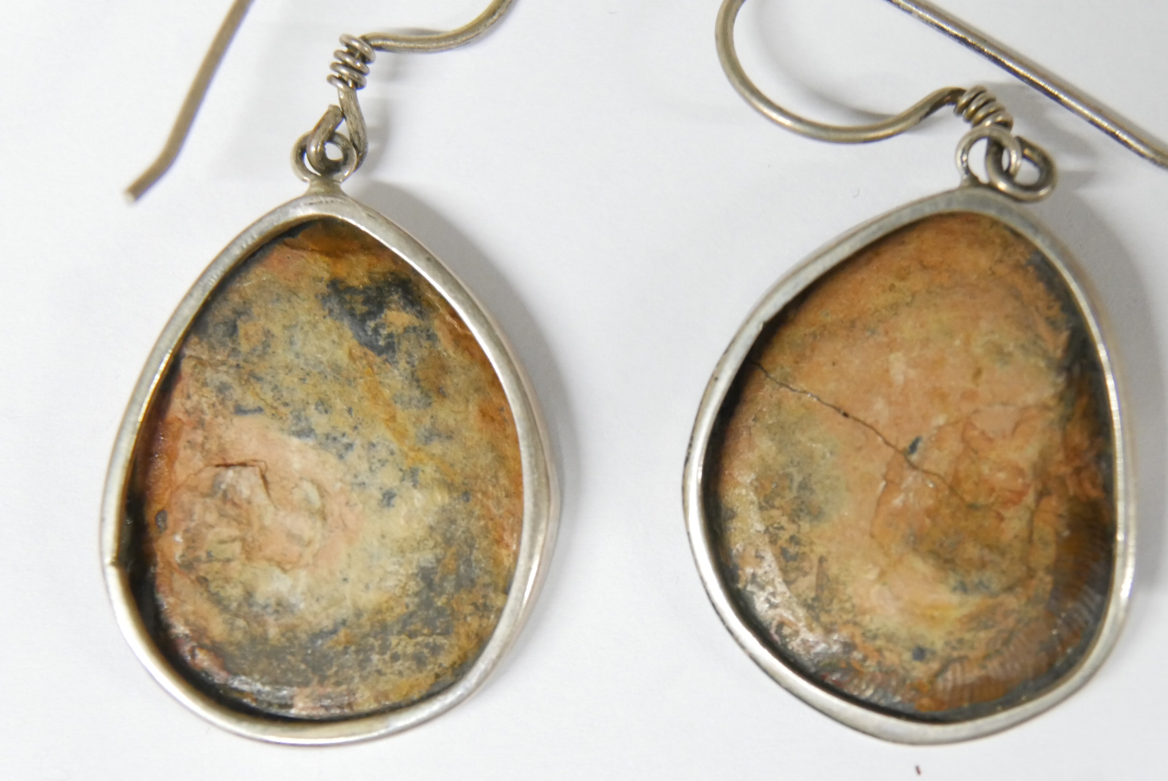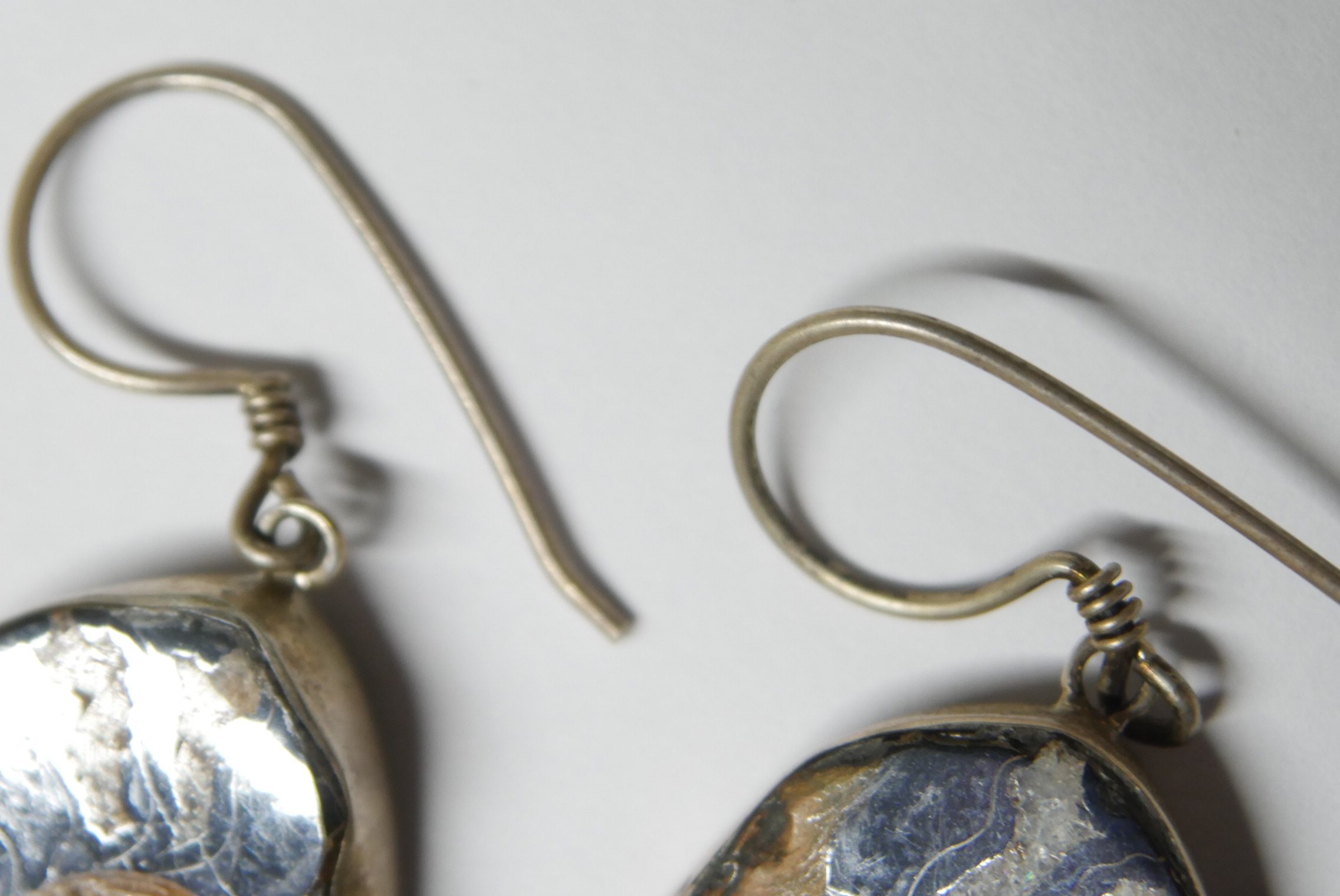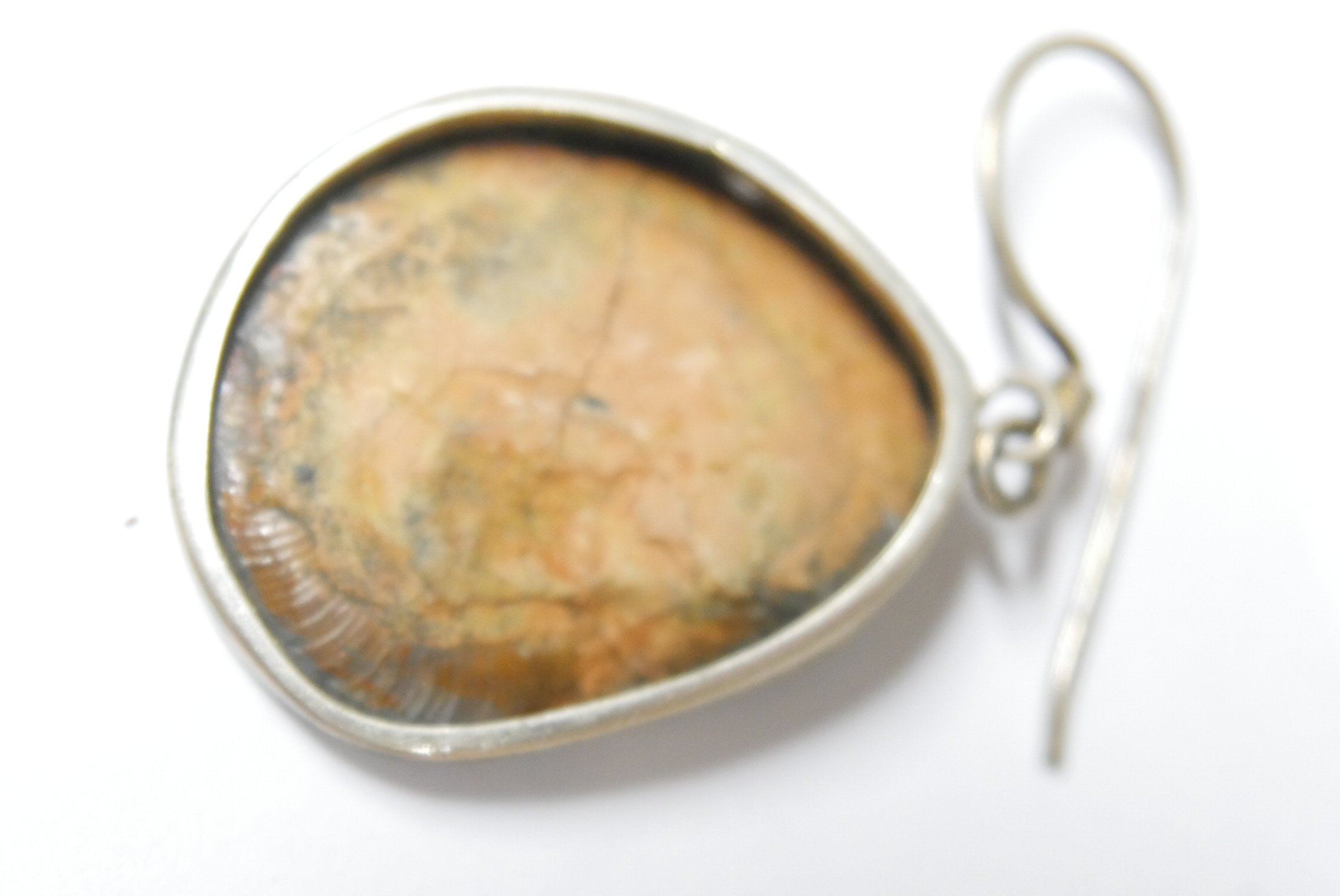 Extravagante Ohrringe Ohrhänger aus 925er Silber mit Amonit Mineralstein.