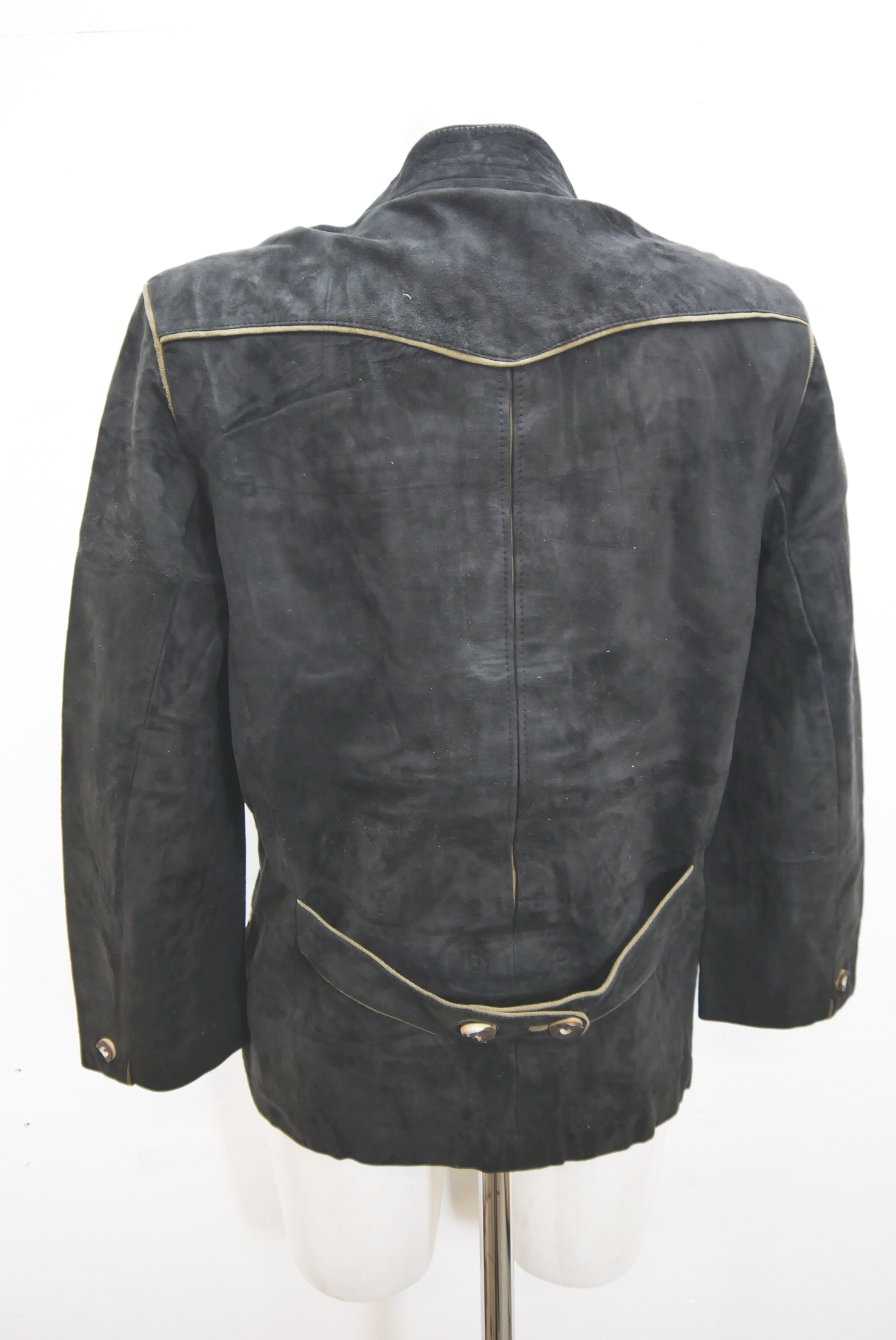 Ingo München Lederjacke mit Besatz Trachtenjacke Ziegenvelour schwarz