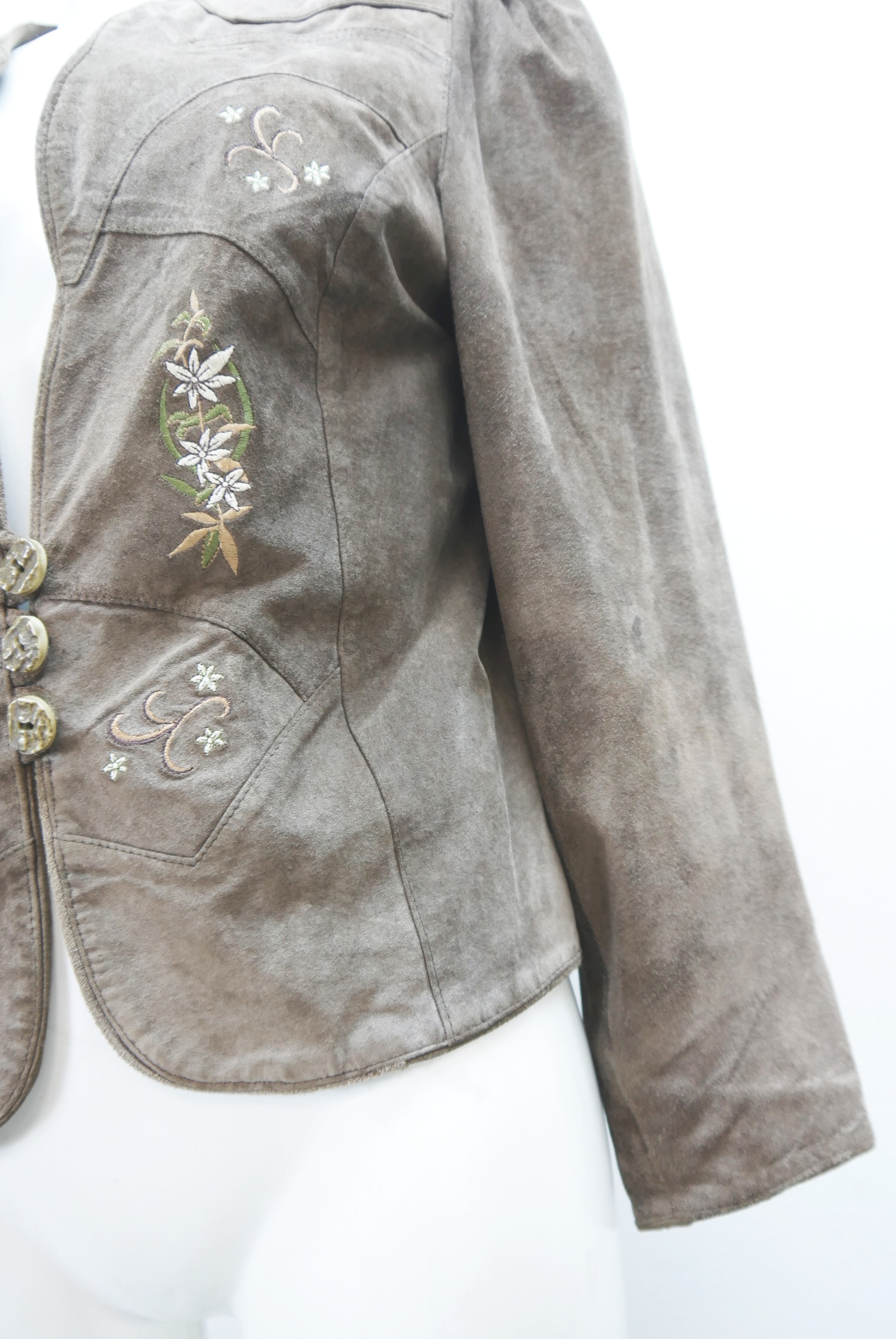Kurze Lederjacke Top Zustand Puffärmel Stickerei Trachtenjacke Blazer Gr.38