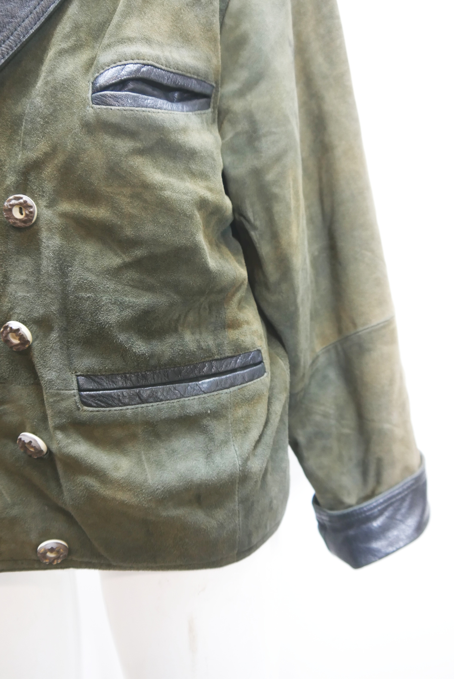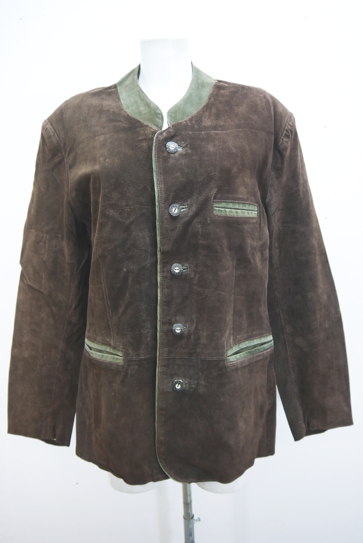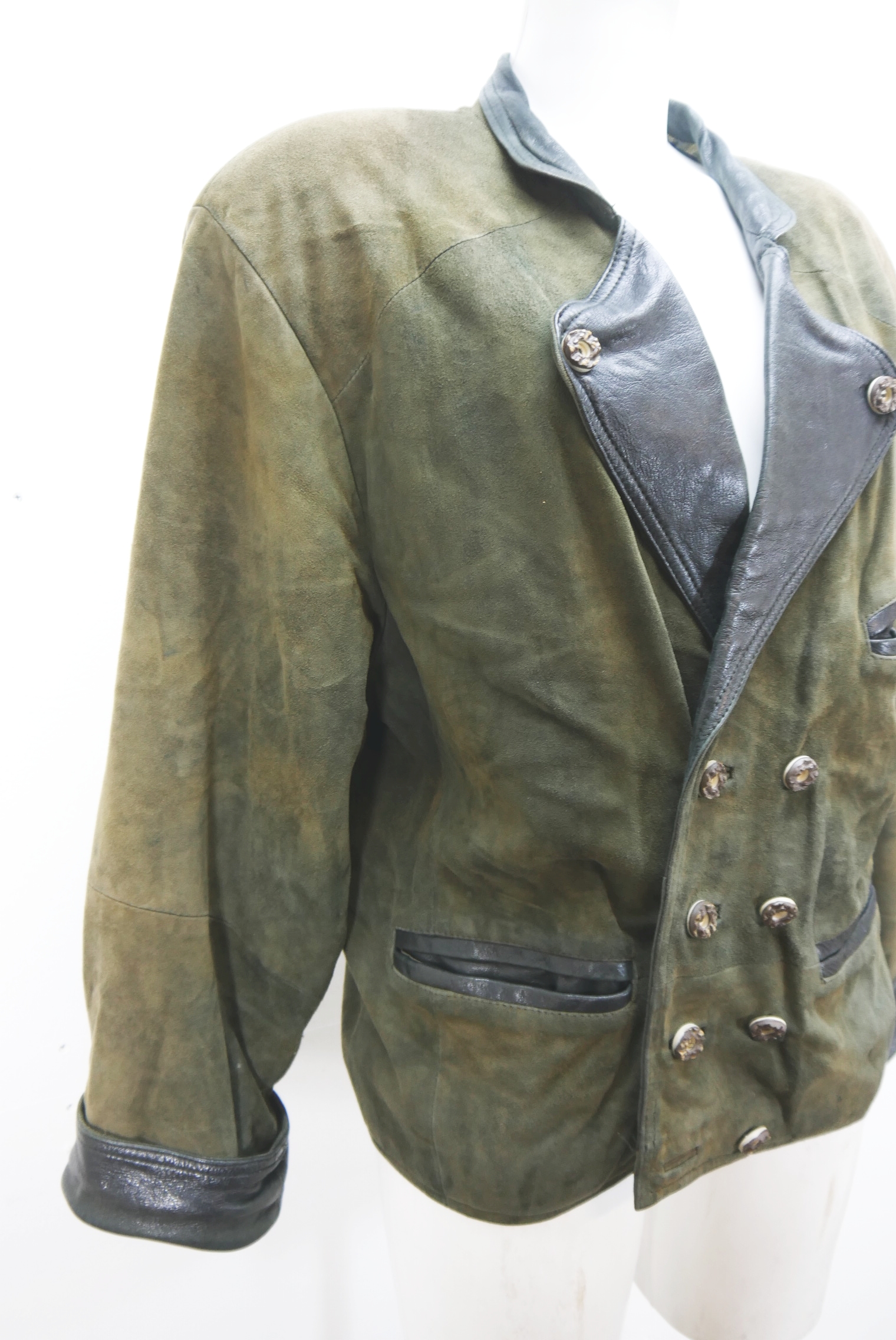 Lederjacke 2 Reiher Vintage Trachtenjacke Ziegenvelour Leder grün