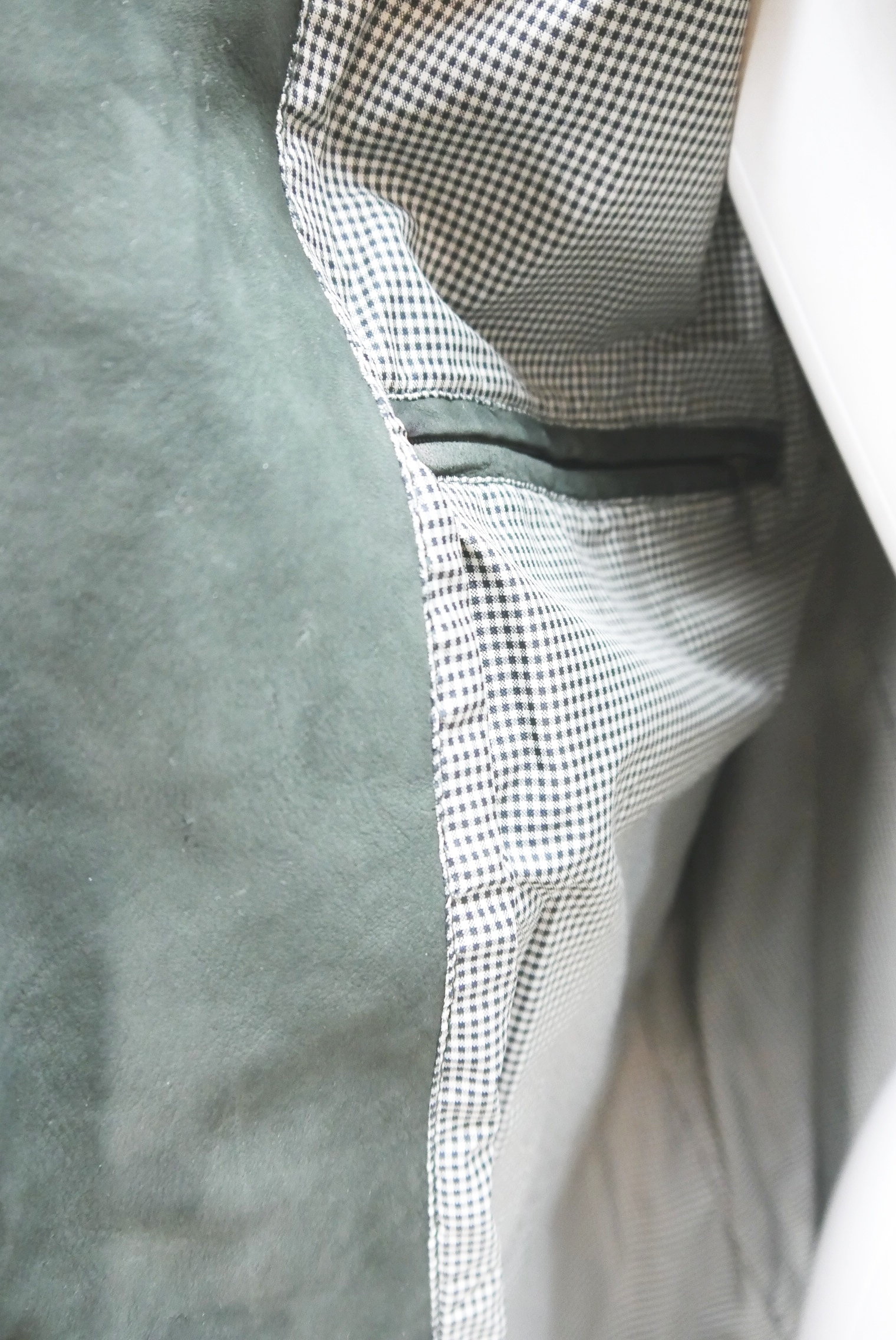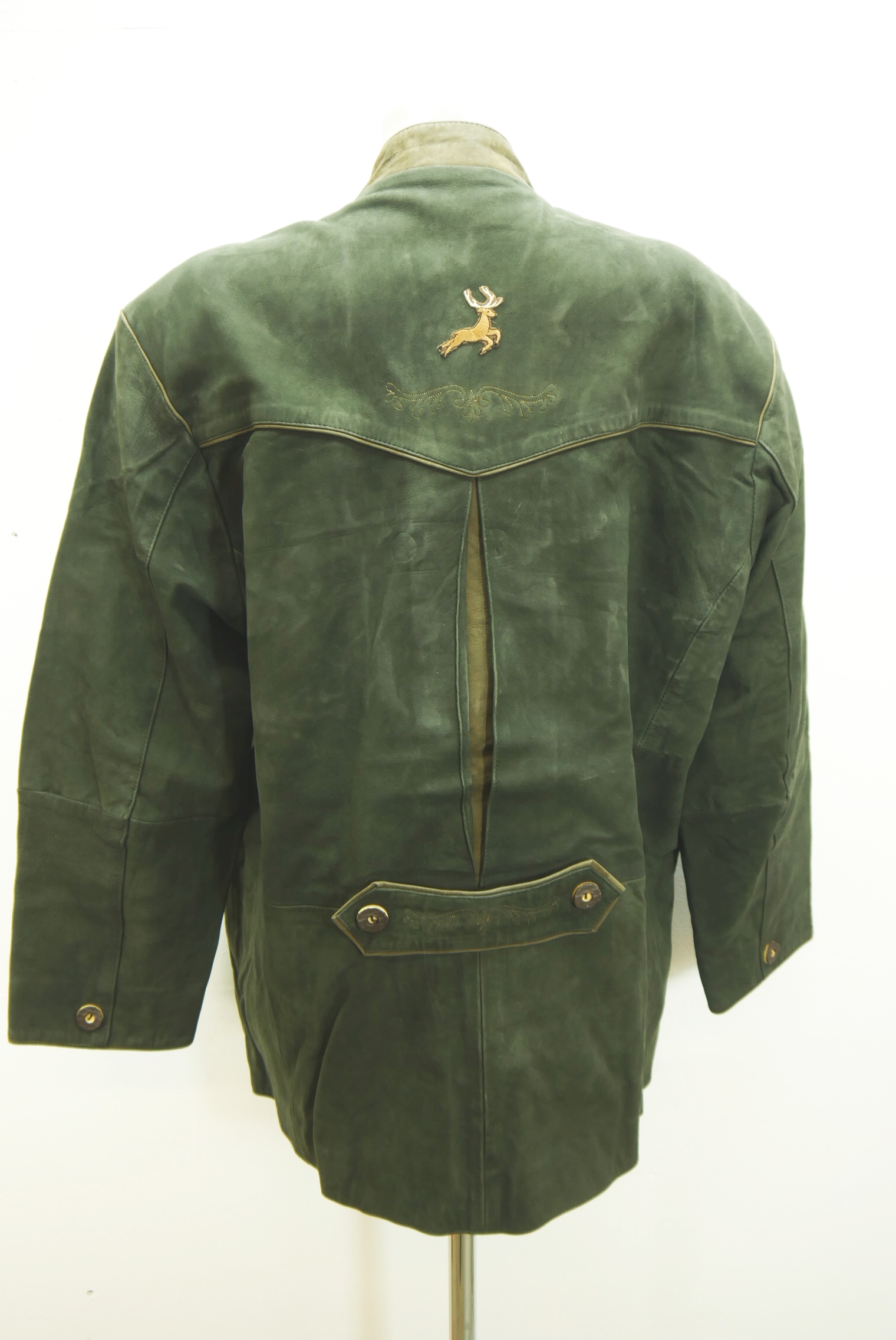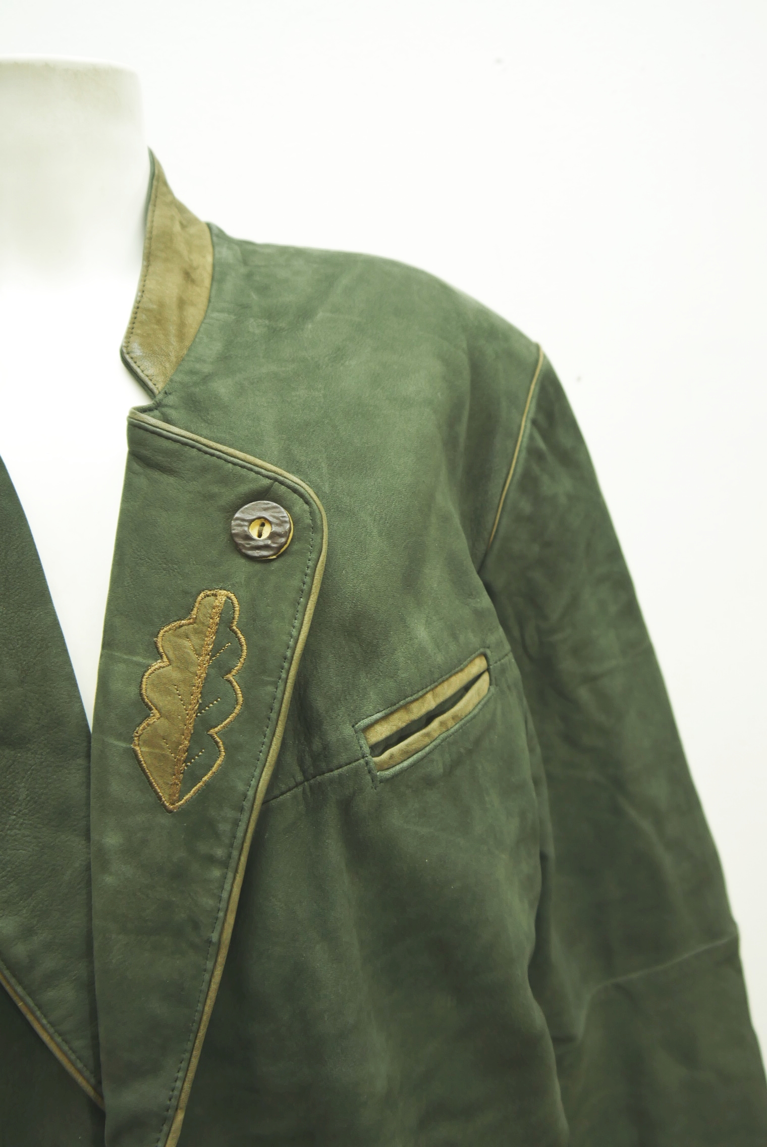 Lederjacke weit geschnitten Trachtenjacke mit Besatz Schafsleder graugrün