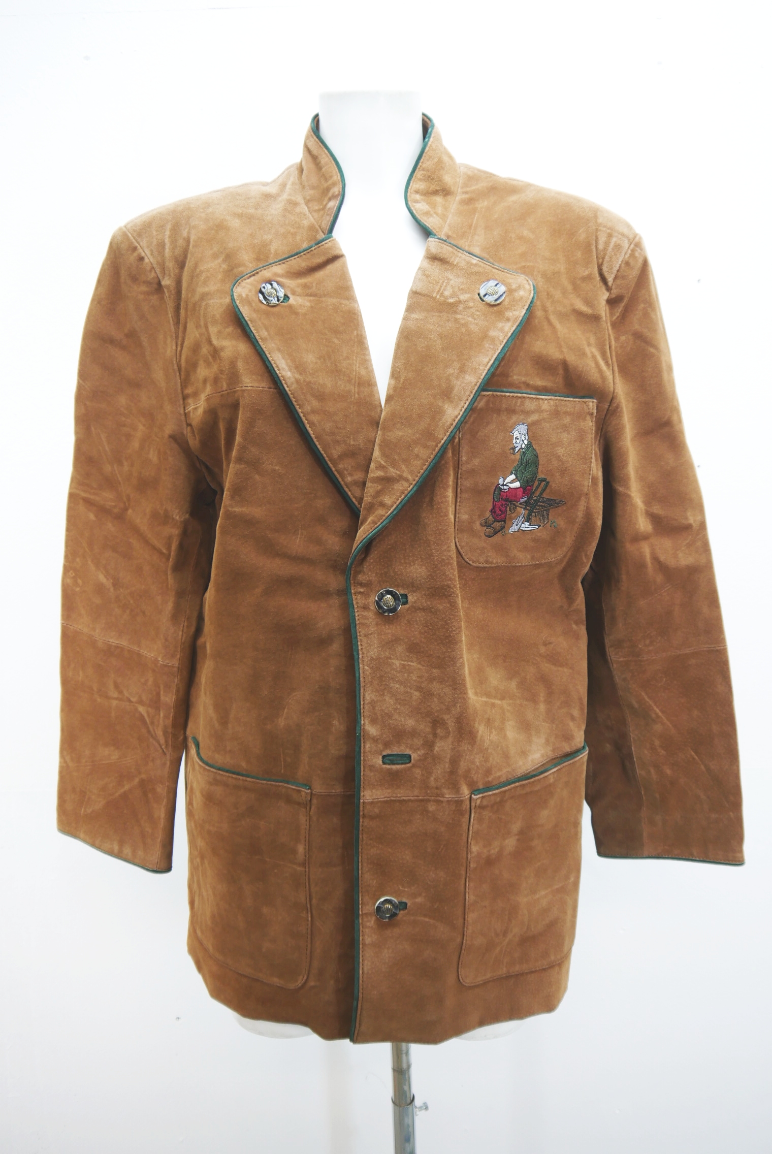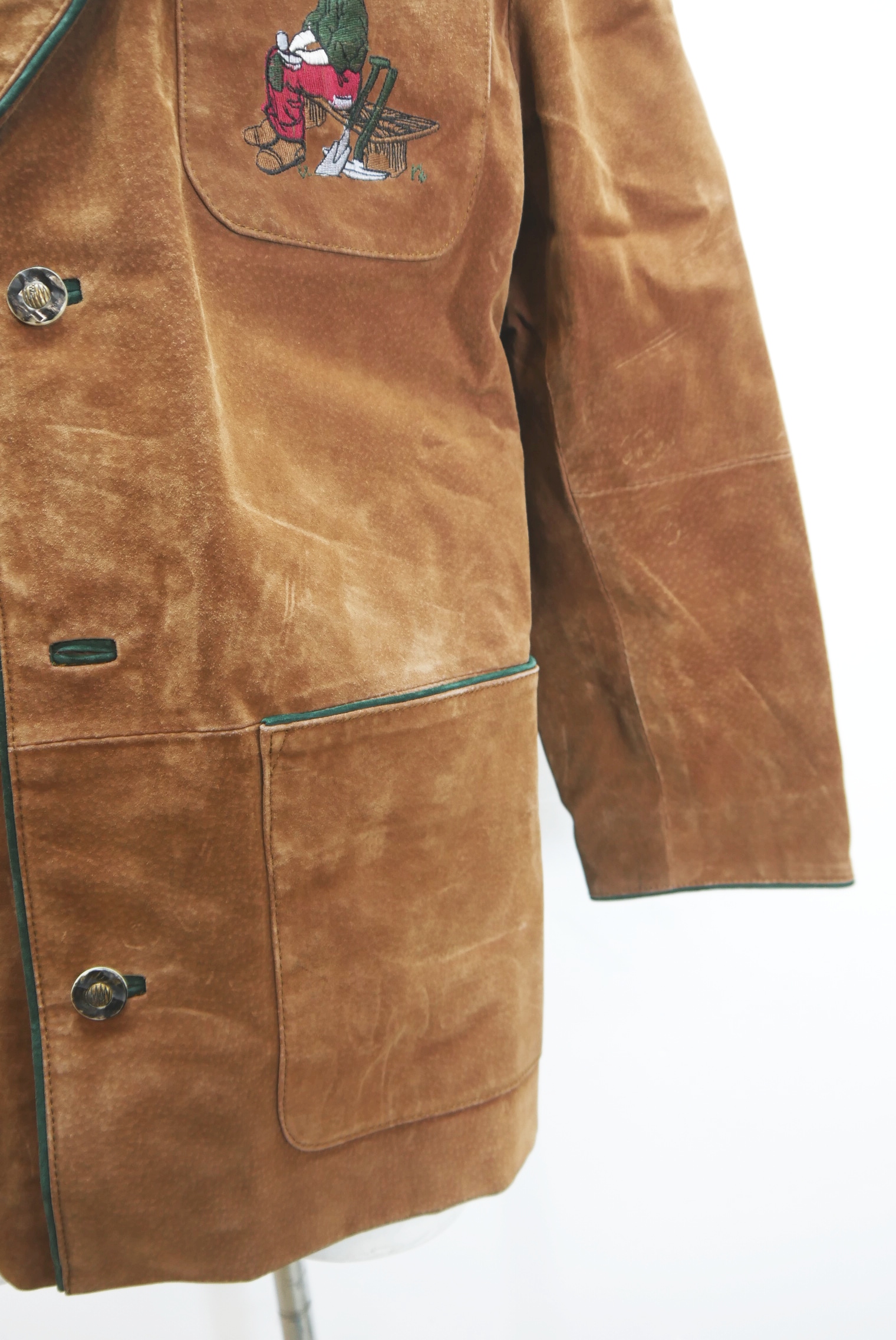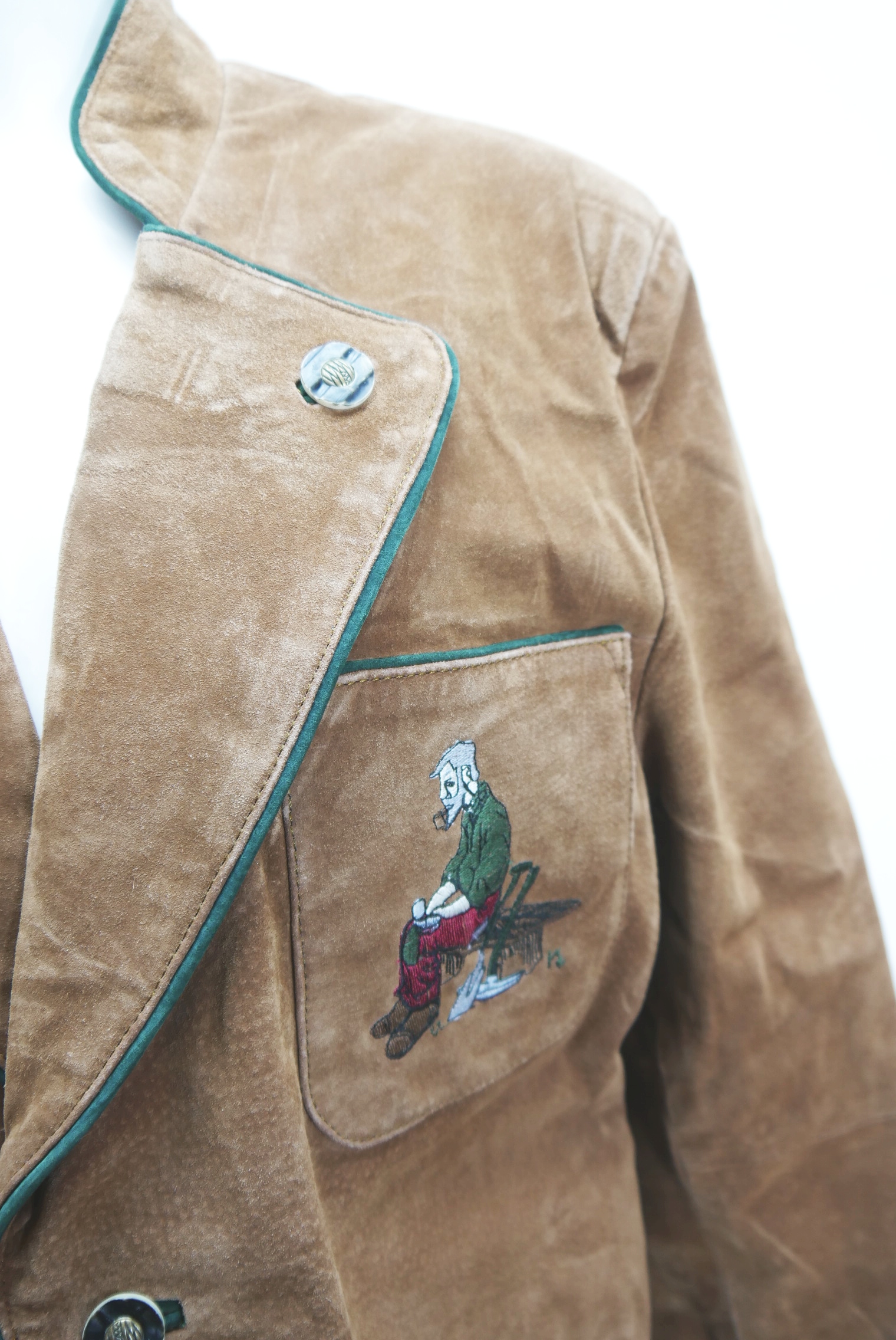 Lederjacke weit geschnitten Trachtenjacke Stickerei Schweinsleder braun