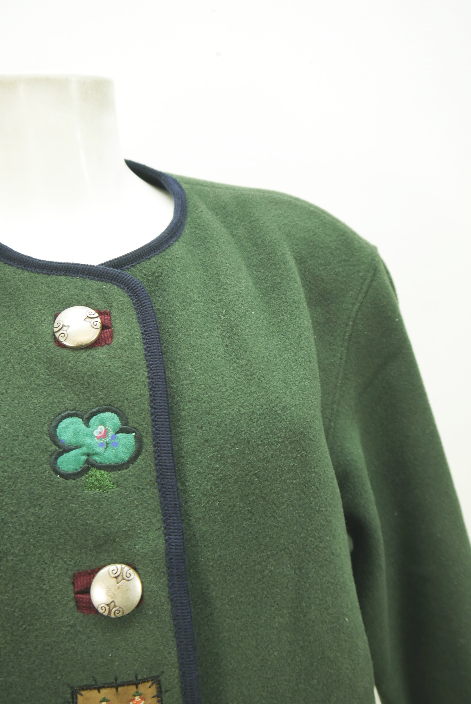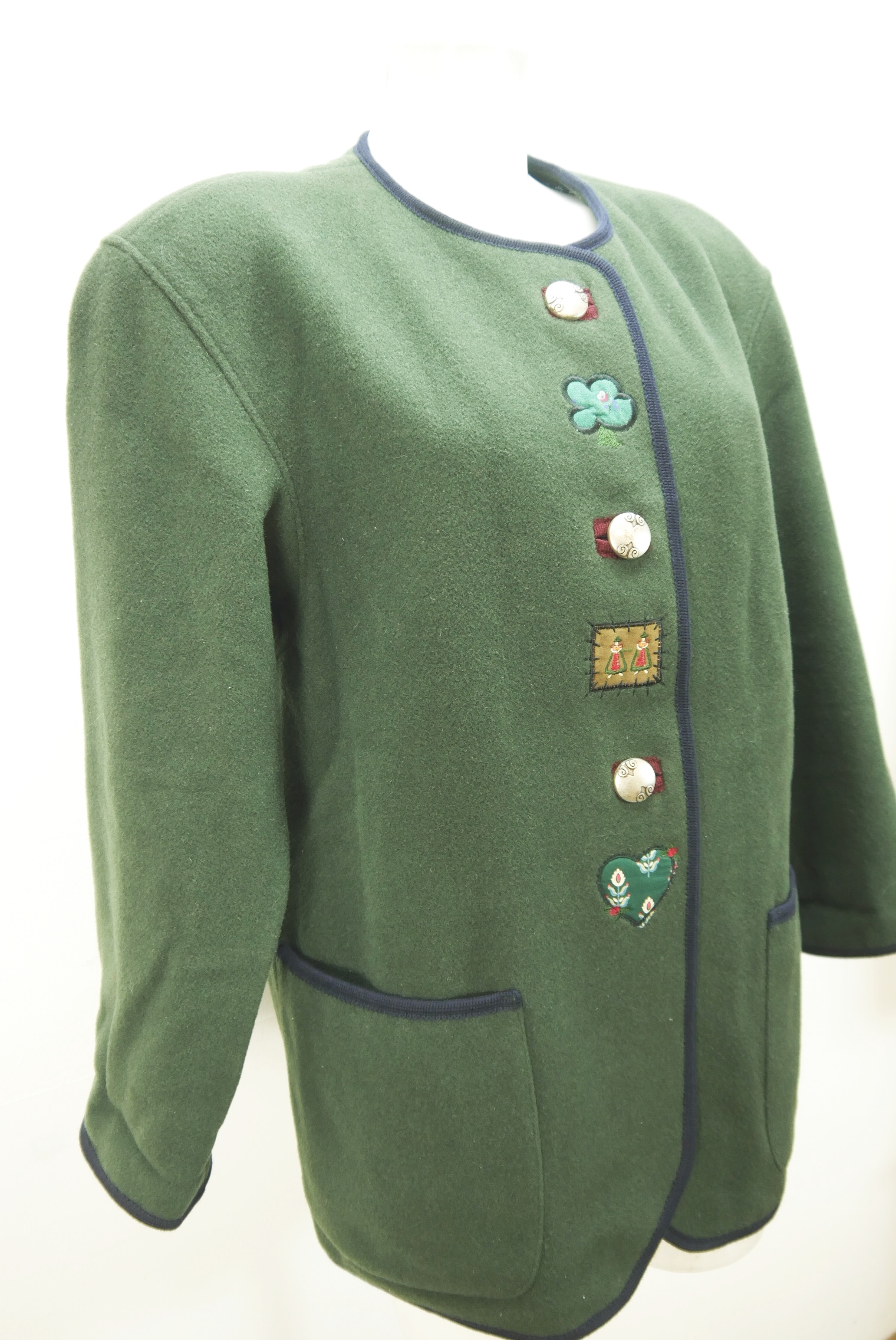 Moser weite warme Walkjacke gefüttert Stickerei Besatz Trachtenjacke grün