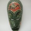Diese original aus Indonesien stammende Maske aus Holz als Wand Dekoration in schön mit grün bemalt und mit Gecko.