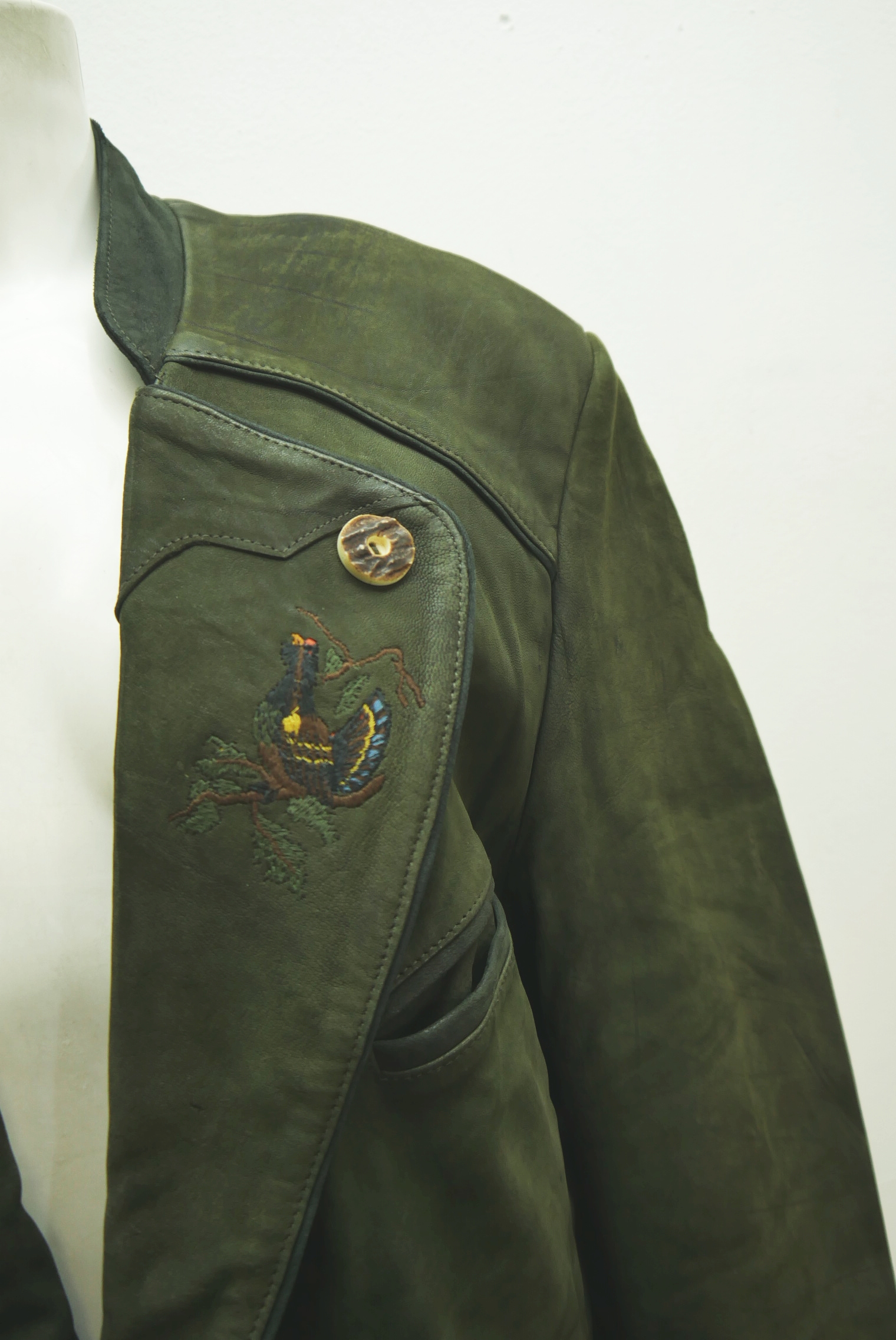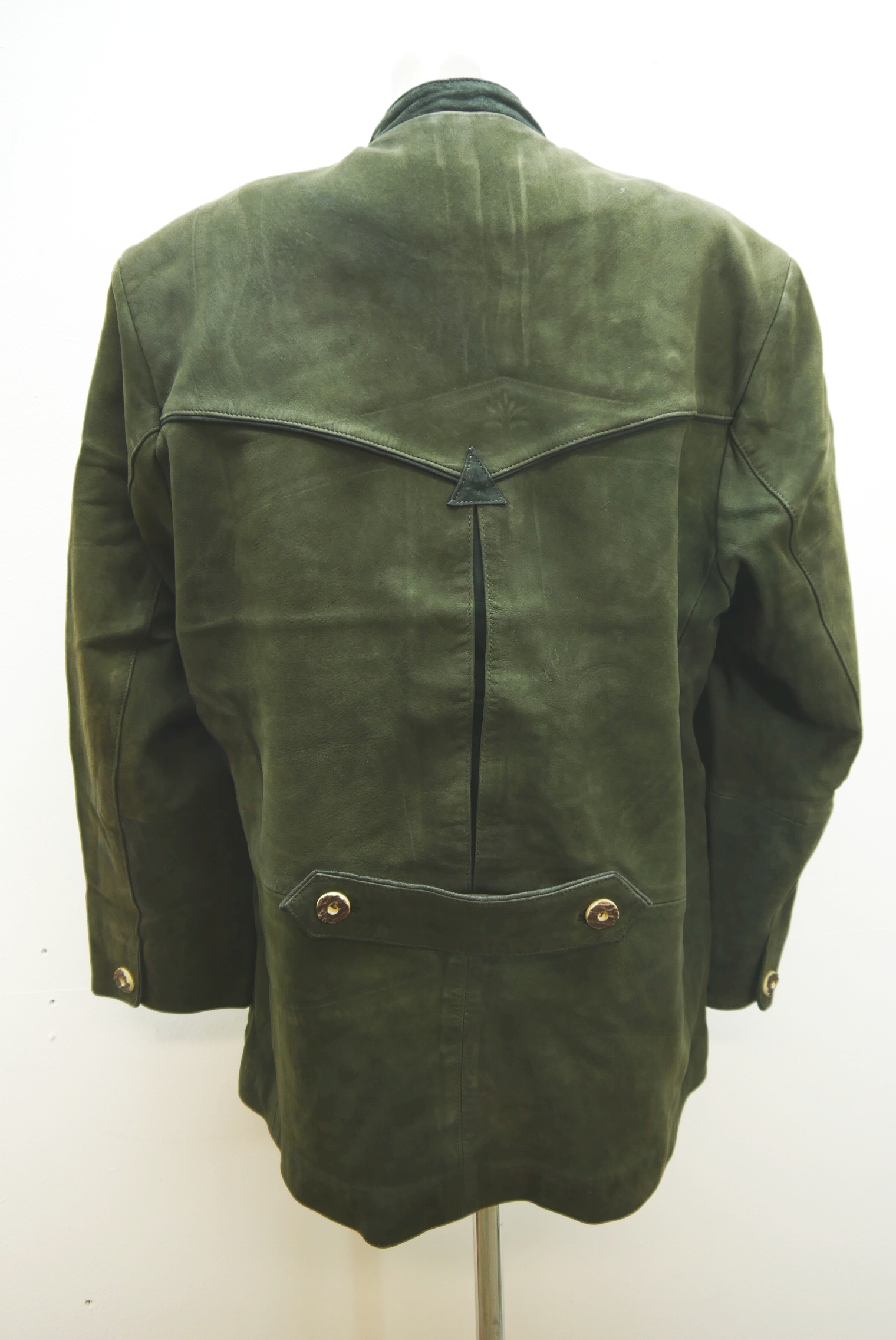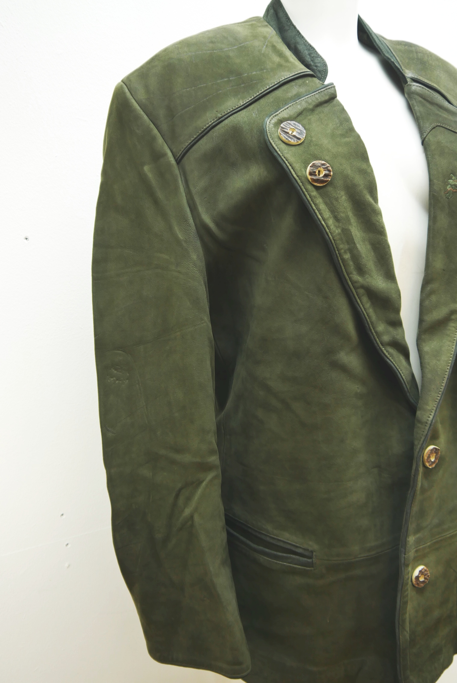 Top Lederjacke dickes Ziegenleder mit Stickerei Trachtenjacke Janker grün
