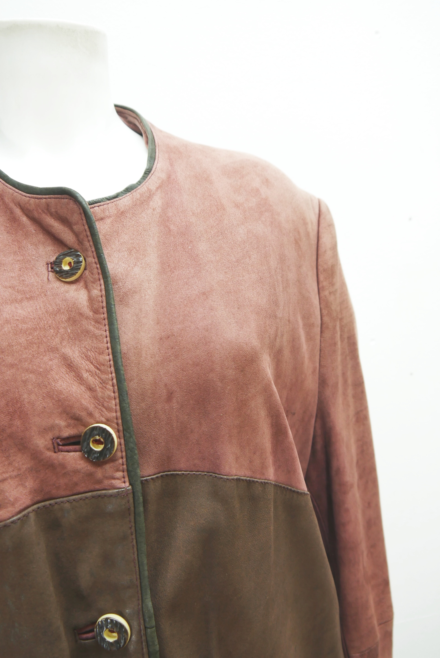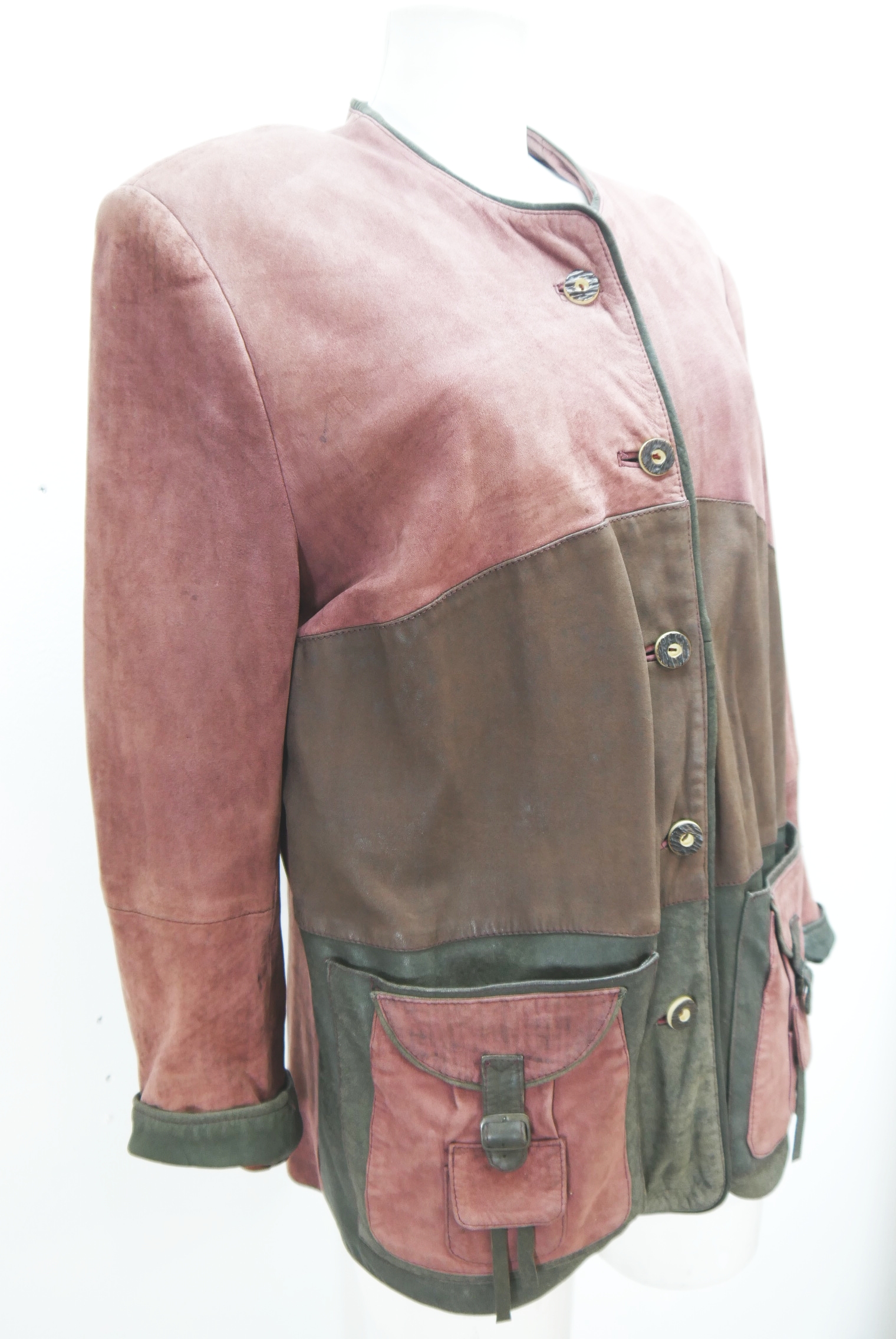 Vintage Lederjacke Wildleder mit Besatz auf Taschen Trachtenjacke Janker