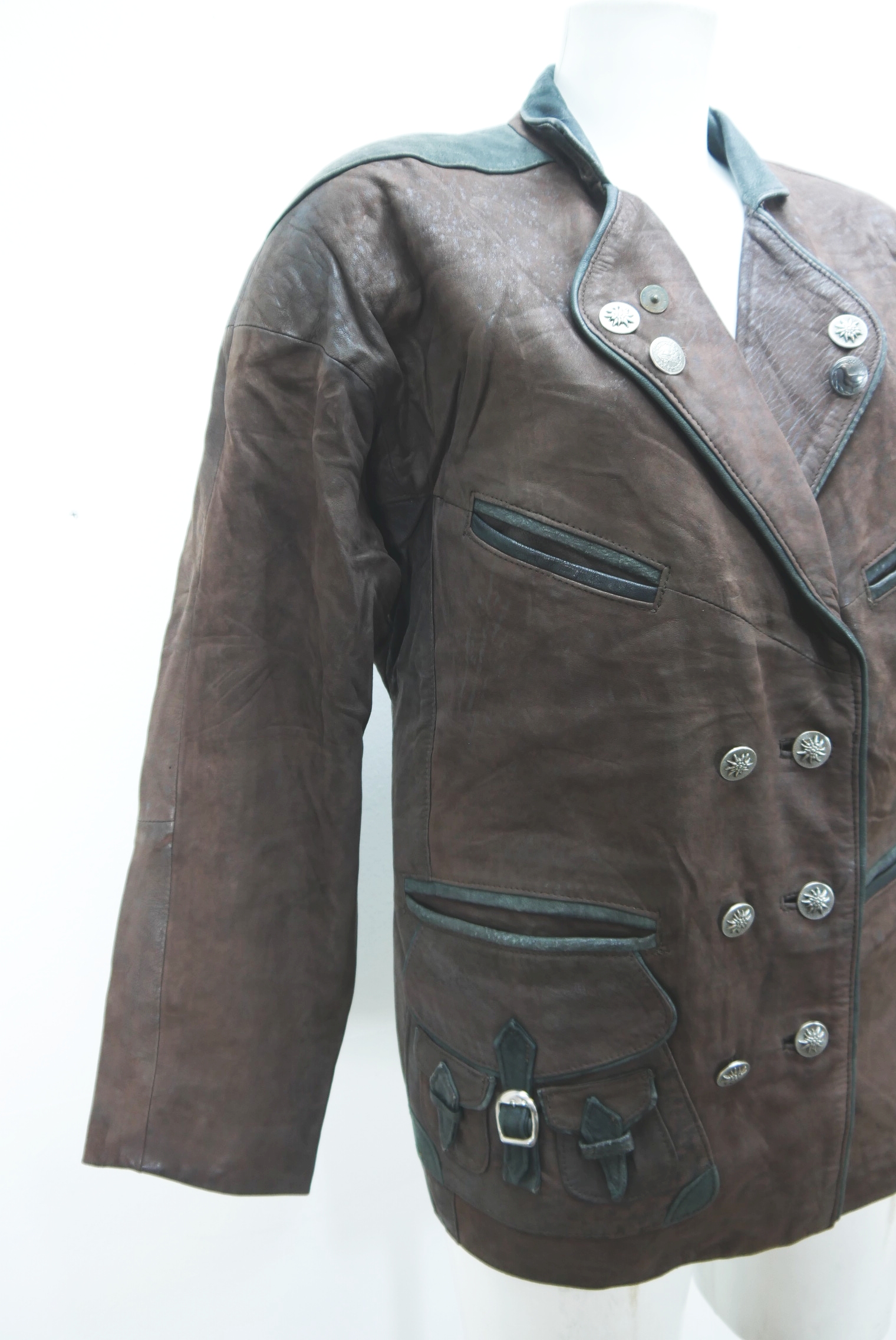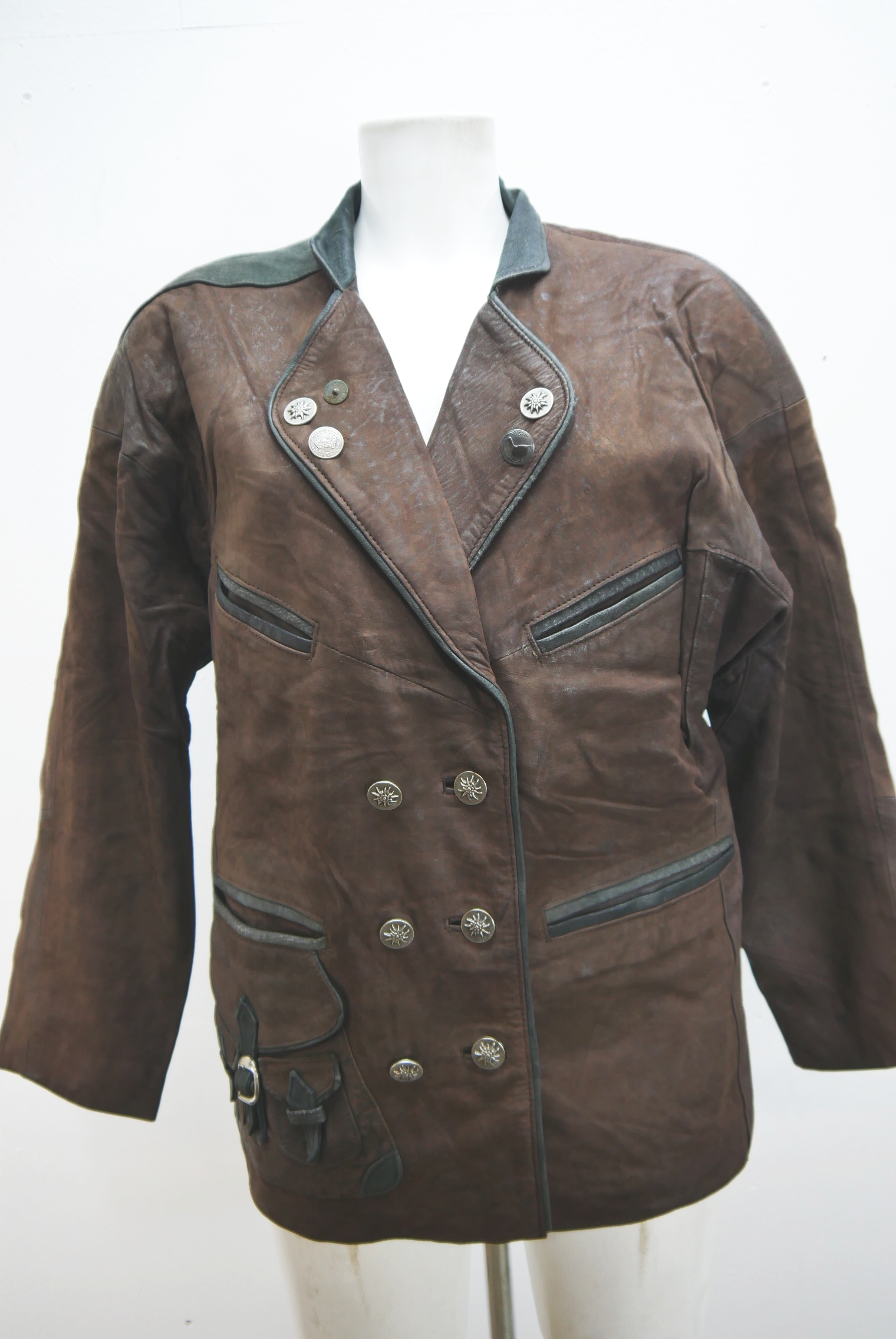 weit geschnitten 90er Vintage Lederjacke Trachtenjacke 2 Reiher Janker Gr.40