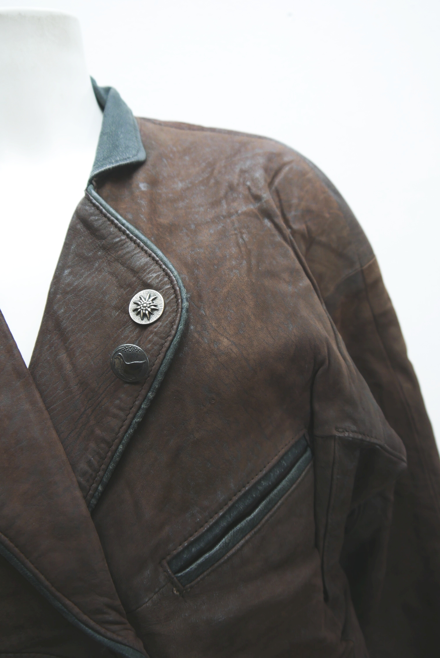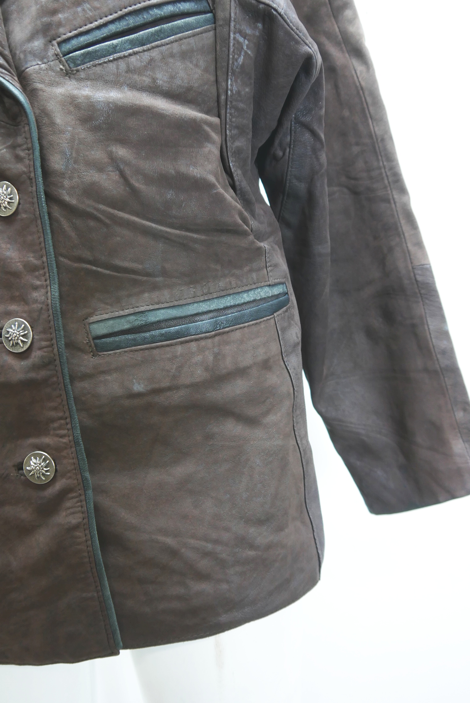 • Die Trachtenjacke hat schöne Knöpfe
