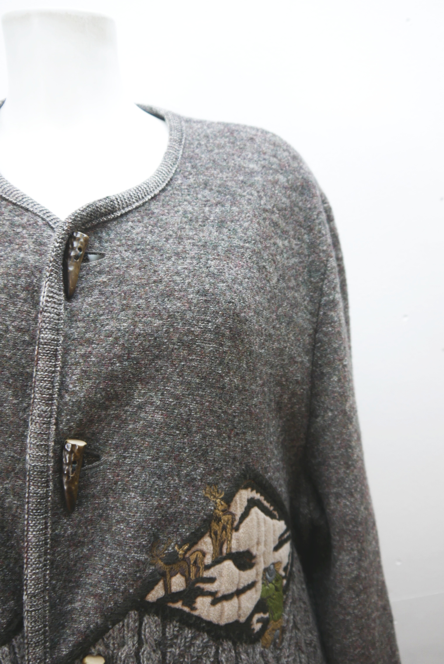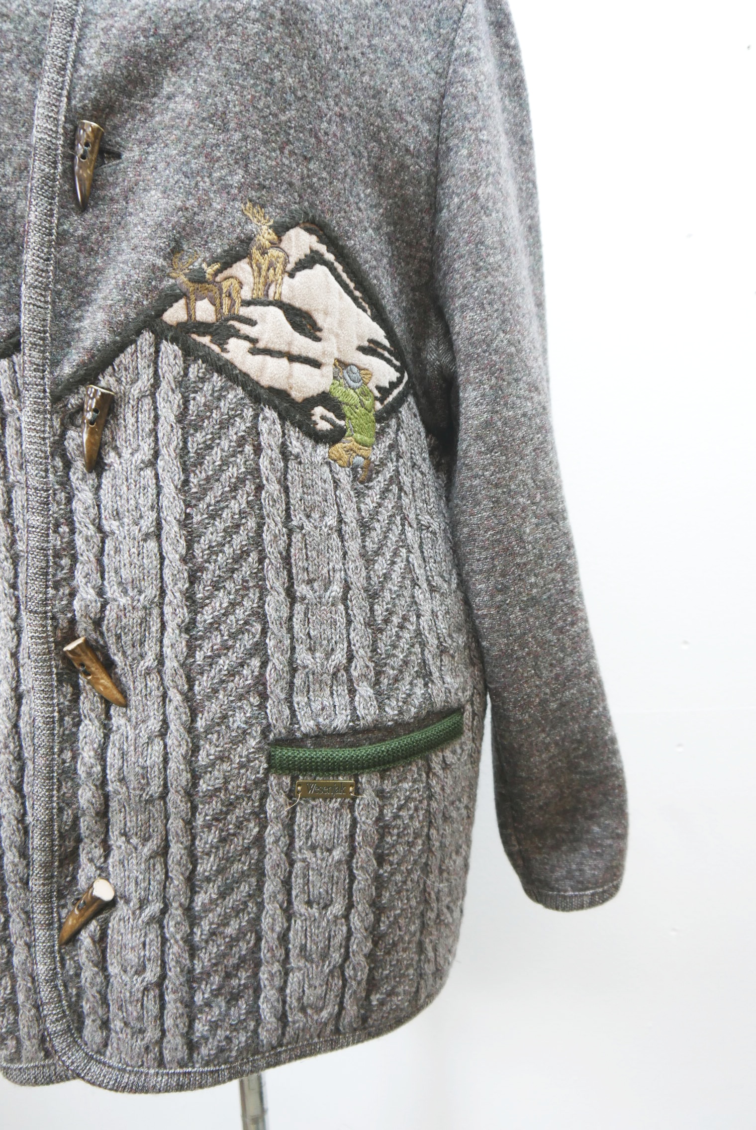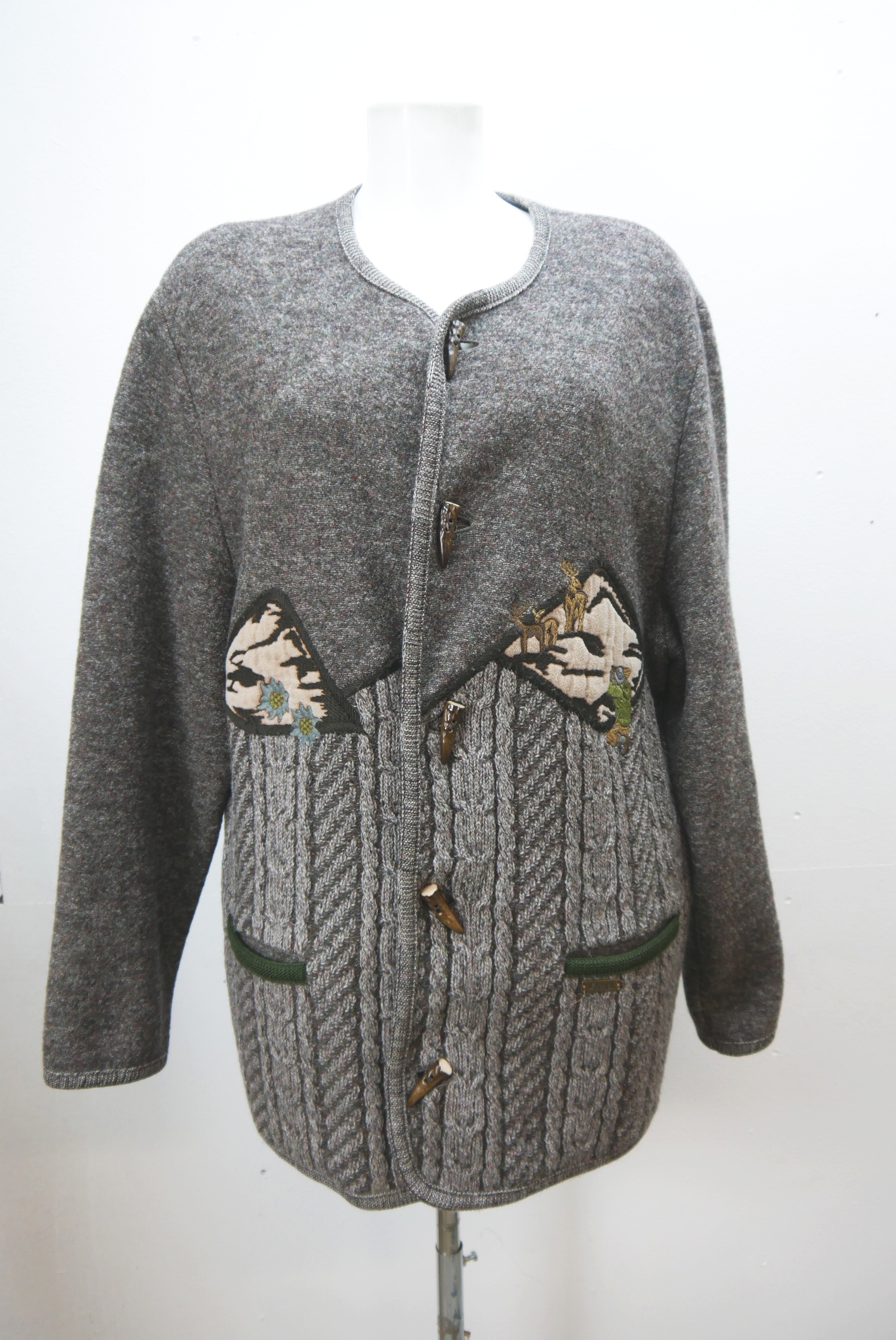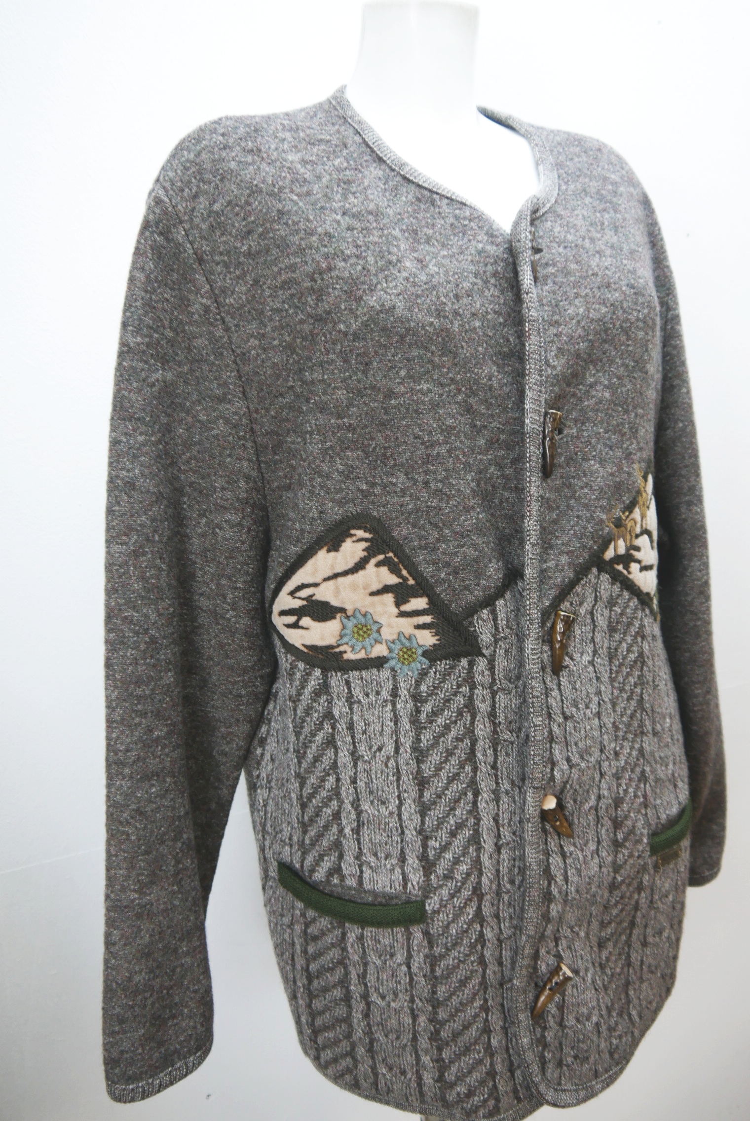 Wesenjak Walkjacke mit Zopfmuster Schurwolle Vintage Trachtenjacke braun